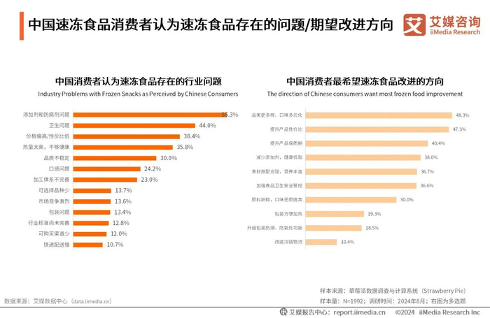 iiMedia Research(艾媒咨询)数据显示,添加剂问题(55.3%)、卫生问题(44.0%)以及性价比低(38.4%)是消费者对速冻食品最关注的问题,在此基础上,消费者最希望速冻食品提高品类多元性以及产品性价比。为了满足消费者的需求,速冻食品企业需要加强生产过程的卫生和质量管控,严格控制添加剂的使用,并不断提高产品的品质和口感。此外,速冻食品企业还需要加强对原材料的品质管控,确保产品的安全和卫生。