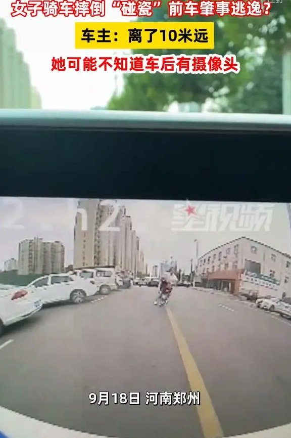 9月18日,河南郑州一个车主爆料,一个骑车的女子在他车后方10米左右摔倒,随后报警说车主肇事逃逸,车后方的摄像头记录了全程,交警最后判定骑车人负主责,车主负次责,因为他的车压线了。