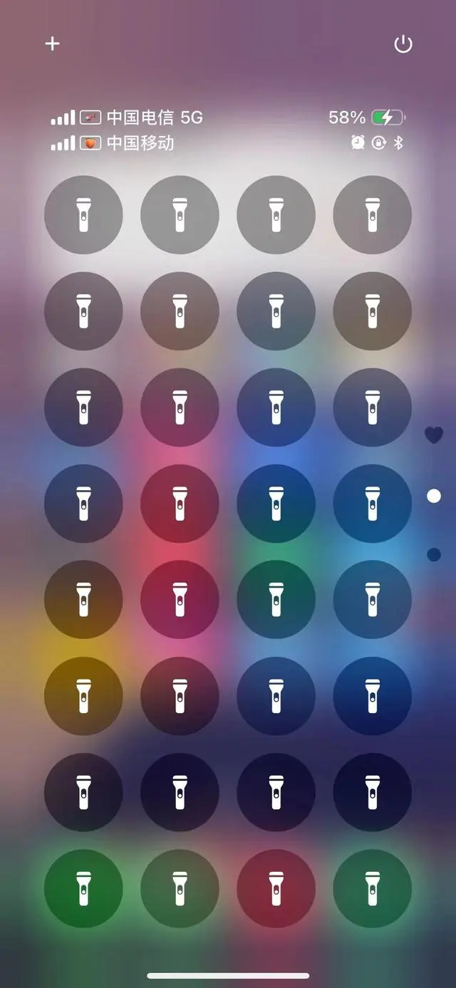 由于自定义程度足够高,新版控制中心也可以被整出很多花活:例如一整页的手电筒开关、一整页的飞行模式图标等。