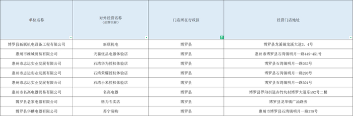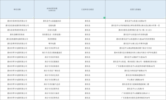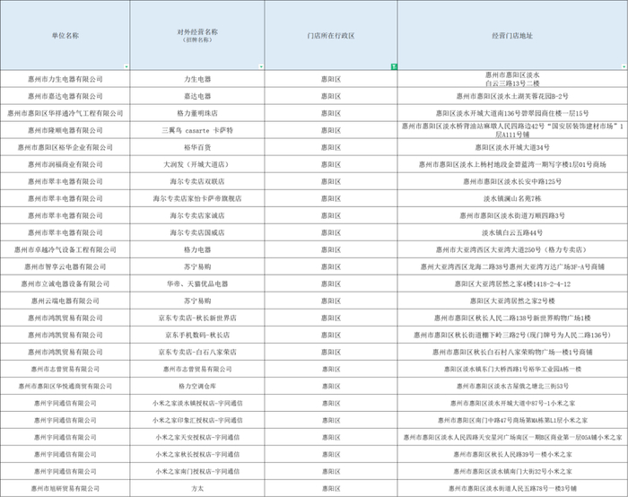 ☑ 2024年惠州市加力支持消费品以旧换新活动参与企业名单(9月14日更新)