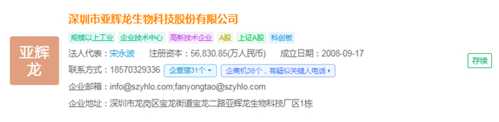 深圳市亚辉龙生物科技股份有限公司(简称:亚辉龙)一家专注于生物医药产业体外诊断领域(IVD)产品研发、生产、销售和服务的公司。企查猫资料显示,该公司成立于2008年,法人代表是宋永波,注册资金为56,830.85(万人民币),总部位于深圳市龙岗区宝龙街道宝龙科技城。