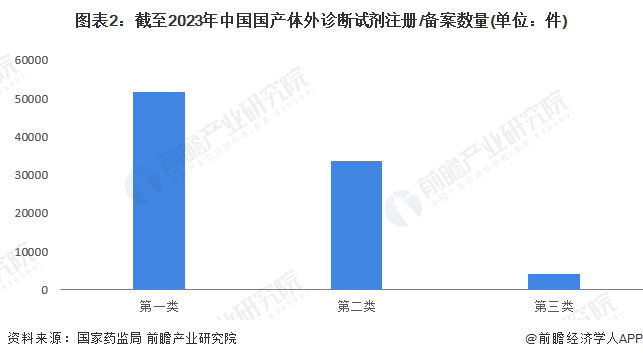 在政策红利与市场需求的双重推动下,我国诊断试剂,尤其是体外诊断试剂迎来了爆发式增长。截至2023年底,第一类体外诊断试剂总计51811件,第二类有33746件,第三类有4205件,合计超过8.9万件。