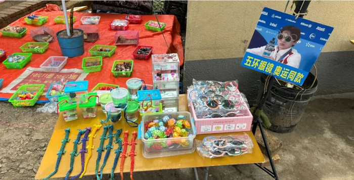 “冠军拿捏,五环魅力,镜在眼前,10元一副”,全增度是最早一批发现奥运五环墨镜商机的摊主。刷到全红婵在巴黎戴这款墨镜的帖子后,全增度立马从网上下单,果然迅速成为这条街的爆款商品,“高峰时一天可以卖200多副,还有的摊主一天能卖500多副!”