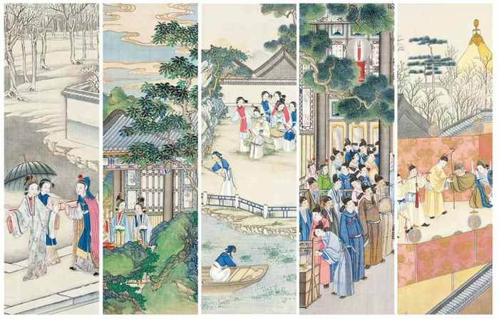 以大观园全景为开篇,从第二幅画开始,原著120回尽收其中。
