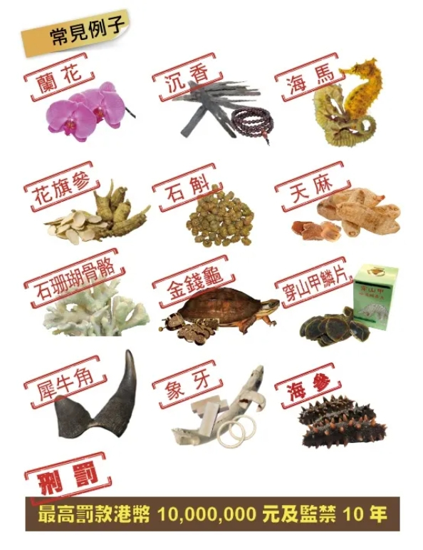 5、此外,切勿携带未领有所须许可证的濒危动植物返港。一经定罪,最高可被罚款1000万港元及监禁10年,有关物品亦会没收。