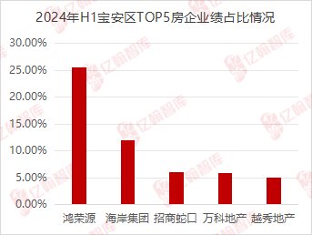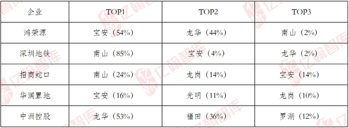 紧随鸿荣源和深圳地铁之后,招商蛇口、华润置地和中洲控股位于市场占有率的前五名之列。企业通过在特定区域或板块内的深耕,销售业绩均超50亿。例如,中洲控股在龙华区的业绩贡献达到了53%,而招商蛇口在南山区的表现也非常突出,这些都进一步证明了区域聚焦战略的有效性。