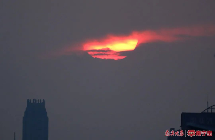 这是今年9月20日,南宁日落时分,“悬日”躲入云层里。