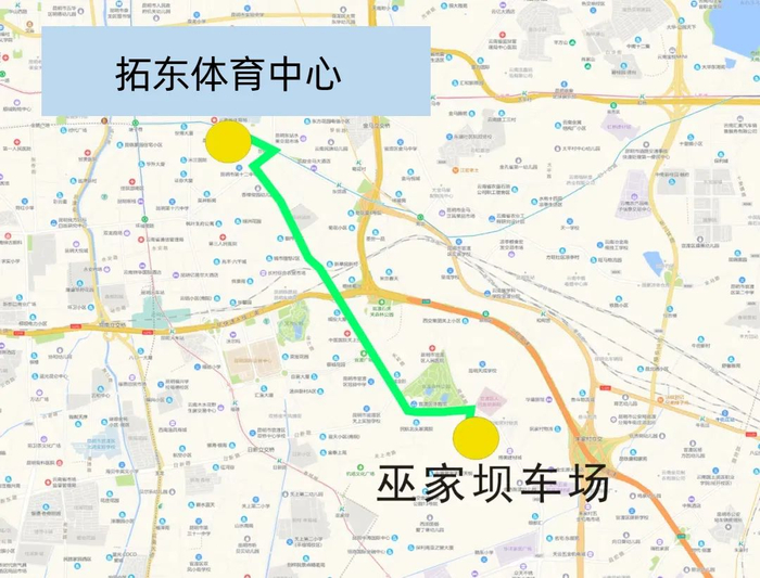 起终站:巫家坝车场(起始站)→拓东体育中心(终到站)
