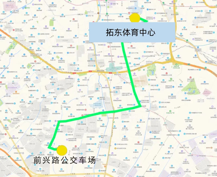 起终站:前兴路公交车场(起始站)→拓东体育中心(终到站)