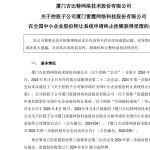昨天(9月20日),福建厦门吉比特网络技术股份有限公司(603444 SH,以下简称“吉比特”)公告披露,旗下控股子公司厦门雷霆网络科技股份有限公司(以下简称“雷霆股份”)已在全国中小企业股份转让系统(俗称“新三板”)申请终止挂牌,并得到受理。