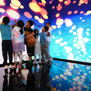 9月16日,在服贸会首钢园文旅服务专题展区,孩子们在体验数字IP作品。新华社记者 逯阳 摄