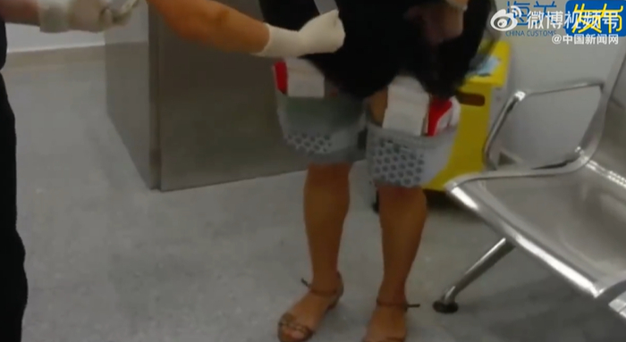 3、女子腿绑4瓶茅台入境被查近日,一身穿黑色长裙的女子经拱北口岸旅检大厅海关“无申报通道”进境。现场关员察觉其走姿异常,且刻意紧贴通关人群企图逃避海关检查,随即对其实施拦截。经进一步检查,从其左右大腿处查获用弹力绷带绑缠的茅台酒4瓶。(海关发布)