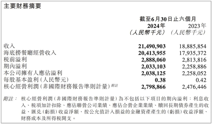 8月27日,海底捞公布了2024年中期业绩,财报显示,海底捞实现营业收入214.91亿元,同比增长13.8%;核心经营利润达27.99亿元,较去年同期增长13%;归母净利润20.38亿元,同比下滑9.7%。
