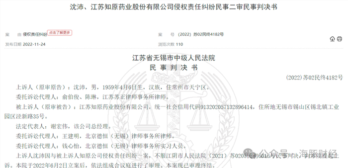 海豚财经注意到,过建阳非法对外出租圣宝罗药业医药生产资质的后续一直延续至2022年,知原药业也卷入到该案相关诉讼中,但后者在招股书中并非披露前实控人及股东非法行为以及相关诉讼及对公司上市的影响。