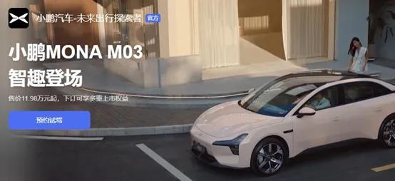小鹏MONA M03是小鹏汽车于827日全新上市的一款走量车型,售价11.98万起,上市48小时大定超3万辆。