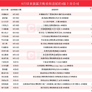 上市公司掀起并购重组热潮!9月披露并购重组进展的A股名单一览