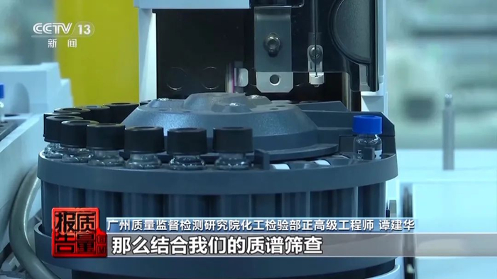 广州质量监督检测研究院化工检验部正高级工程师 谭建华:我们要打破自己的思维方式了,我们要寻求一些可能更高端的方法,或者一些综合性的分析策略,所以我们后续又用了筛查性的设备,对可疑的组分进行非靶向性筛查。
