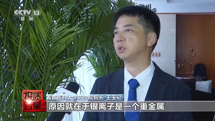 首都医科大学药学院院长 王玉记:硝酸银的问题就是它对于黏膜的刺激性非常强。比如说接触到角膜,接触到我们的呼吸道,吸入肺里面,进入人体, 对于我们的整个细胞体系、黏膜都是有很大危害的,原因就在于银离子是重金属,所以我们在很多情况下是要避免接触硝酸银这种物质的。