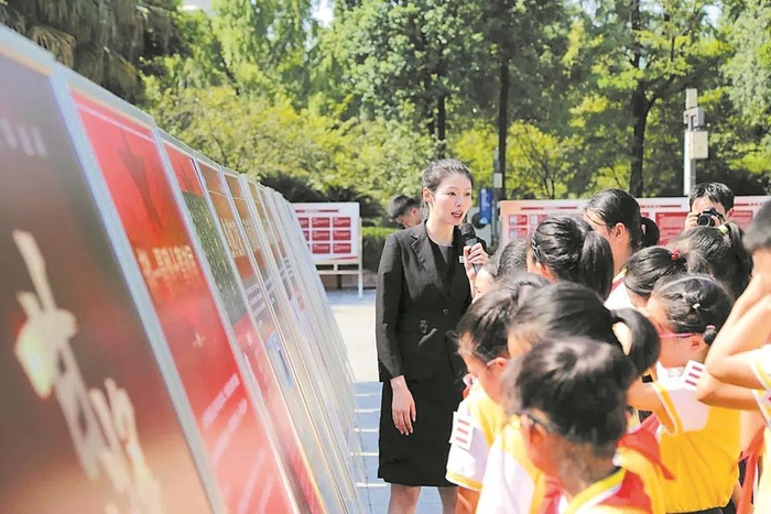 随后,师生们又走进抗战英烈陈列馆参观,再次回顾抗日战争的艰辛历程,重温革命先烈的英勇事迹。西南石油大学志愿者为同学们现场上了一堂主题思政课,激励同学们以史为鉴、勤奋学习、砥砺前行。“今天的纪念活动,让我们认识到要更加珍惜今天的和平生活,也让我们认真思考在新时代发展中,该如何继续发扬先烈们的精神,为国家发展贡献力量。”成都市新都一中高一学生顾函睿说。