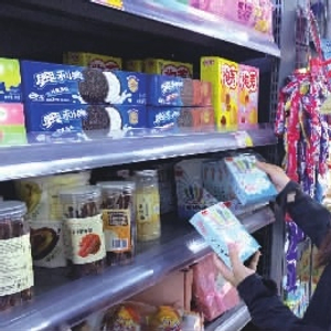 在长沙一家超市,市民正在选购蜡瓶糖。