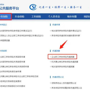 第一步:登录“国家社会保险公共服务平台”,找到“养老保险—企业职工养老保险待遇测算”。