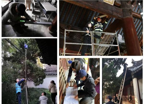 李浈:首先必须要理解它为什么要修,修什么地方,最后才能知道怎么修。我们通过现场勘查,了解建筑的保存情况,历史原状、使用状况,才能对其进行对症下药。在前期进行勘查工作时,现场测绘不仅使用了传统的方法,还使用了一些高科技仪器;比如采用三维扫描数据分析,它采集的数据就比较准确,利用这些准确的数据就可以检测出建筑有没有变形。比如修缮前的大成殿它向北边倾斜就比较明显。另外我们还使用了一些高科技仪器对建筑的材料进行检测。比如建筑使用的是什么树种,这些树的含水率是多少,有没有腐朽、空洞、开裂等情况的存在。通过这些检测以后,发现孔庙大概存在4个主要问题: