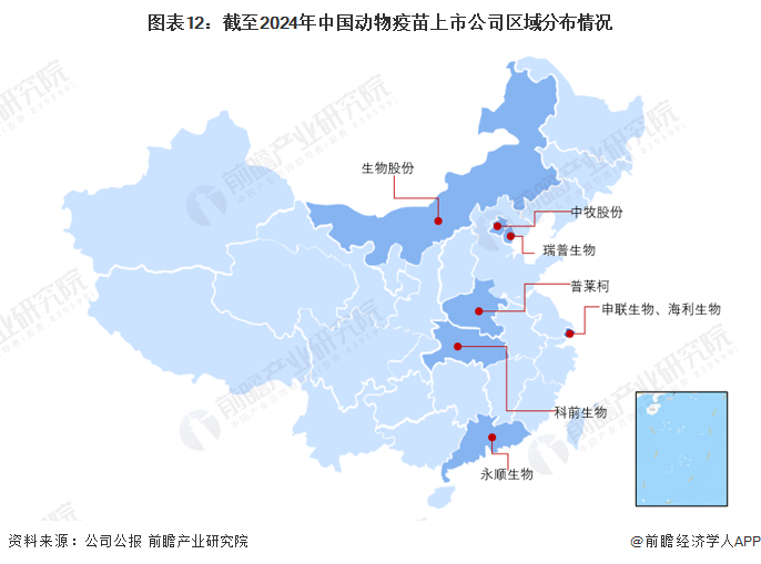从区域分布看,中国动物疫苗上市公司主要分布在上海、广东、内蒙古、北京、天津、辽宁等省市,其中上海的动物疫苗上市公司数量较多,包括申联生物和海利生物。