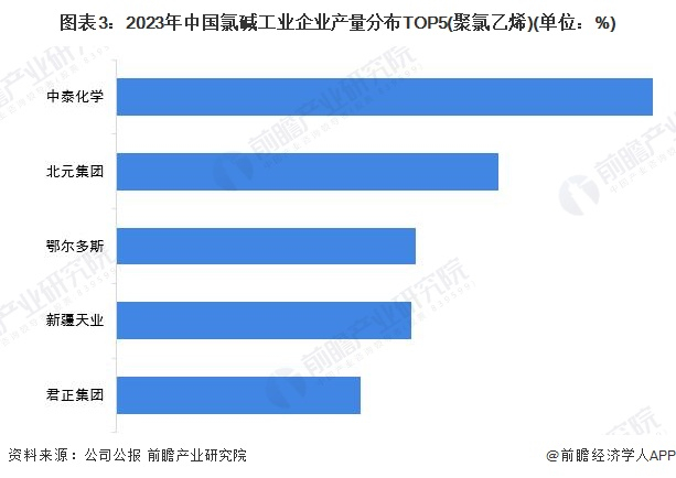 前瞻根据各公司公告的产能数据并结合2023年我国烧碱与聚氯乙烯的产量数据,测算出我国烧碱与聚氯乙烯的排名。目前,中泰化学是我国烧碱板块的龙头企业,2023年产量占比为3.3%。