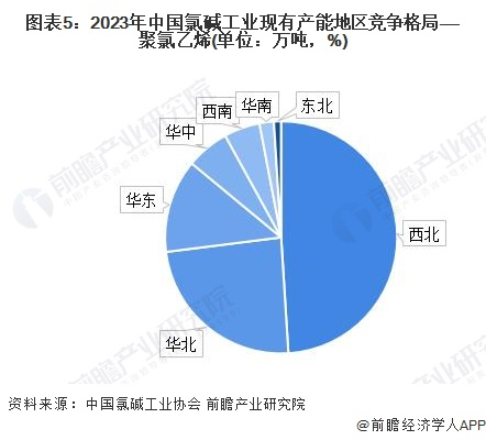 在聚氯乙烯方面,西北是我国最大产能聚集地,2023年西北地区的PVC产能占比高达49%;其次是华北地区,产能占比24 %。