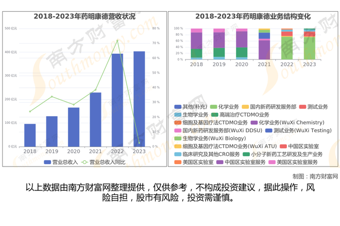 药明康德于2018年5月8日在上海证券交易所上市,股票代码603259。公司主营业务为化学业务、测试业务、生物学业务、细胞及基因疗法CTDMO业务、国内新药研发服务业务。