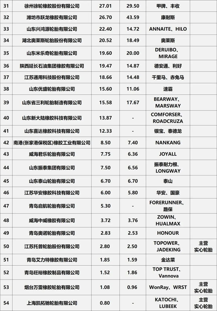 该榜单针对在中国大陆设厂的所有轮胎企业(包括外资企业),以2023年企业在中国大陆工厂轮胎业务销售收入为依据。