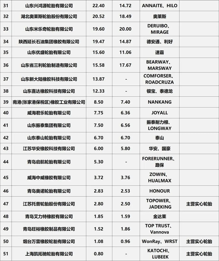 2024年度中国境内轮胎企业排行榜