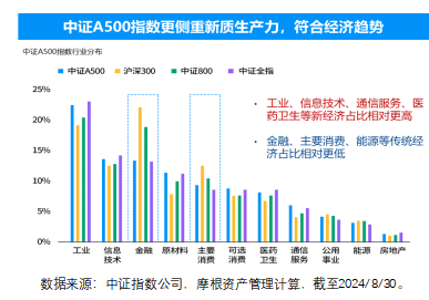 中证A500指数正式发布,摩根资产管理深度解析 9月23日,备受关注的中证A500指数如期发布。根据指数编制方案,中证A500指数定位于反映各行业最具代表性上市公司证券的整体表现,指数聚焦行业均衡,从各行业选取500只市值较大证券作为指数样本,三级行业龙头公司具备优先入选资格,此外,指数编制结合互联互通、ESG等筛选条件,便利境内外中长期资金配置A股资产。