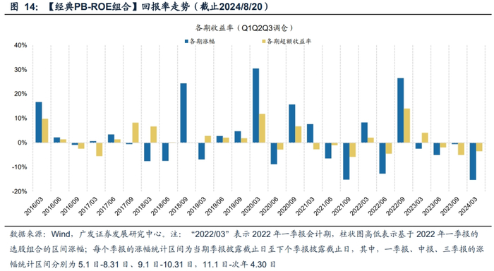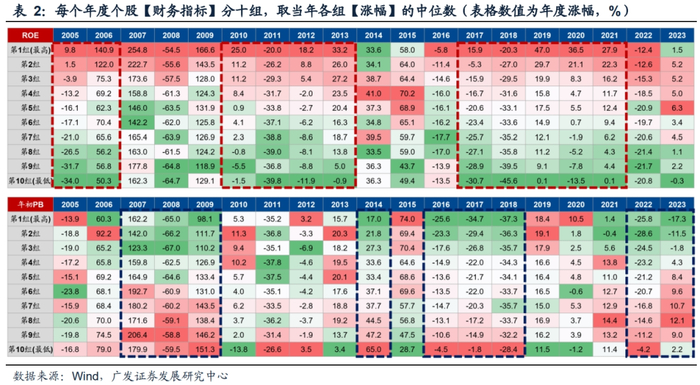 过去几年,ROE指标有时候很有效,比如17-21年;有时候效果一般,比如14-16年、22-23年。PB指标也类似,有时候很有效,比如16-18年、22-23年;有时候效果一般,比如19-21年。