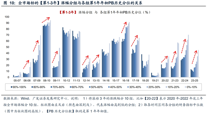 对于长周期投资来说,买的便宜很重要。1年维度,PB高低与涨跌幅相关性不显著,但3年或5年维度,低PB的有效性明显加强。