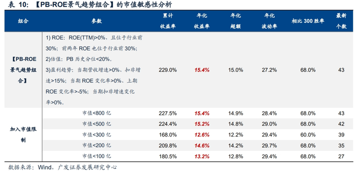 该组合主要是选择高ROE、低PB的公司,对盈利趋势等指标不作要求。