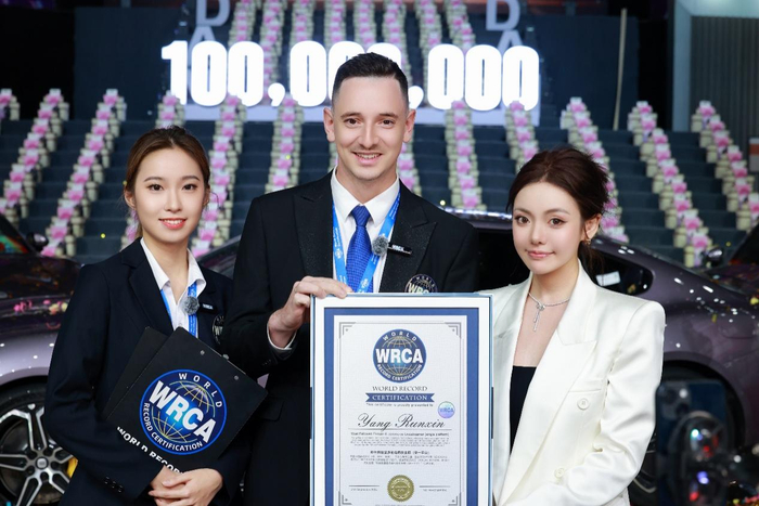 本次在蛋蛋破亿直播间,产品覆盖美妆个护、家电数码、生活百货、食品服饰等全品类。其中上架热抢大单品有:韩束礼盒爆卖44万单,总销售额超1.7亿元;慕思大黑牛真皮床3.4万单,总销售额也超1.7亿元;荣耀折叠屏手机破1.9万单,带货销售额超1.1亿元;热卖新品博创眼霜销售10万单,总销售额破5000万;还有创维电视、周大生手镯、骆驼冲锋衣等品质好物,质价比极高。当日,世界纪录认证机构WRCA也有专人来到现场,实时见证杨润心(蛋蛋)成为全网粉丝数量最多的女主播。