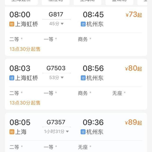 上海各火车站起售时间就和杭州不一样,上海虹桥站新票起售时间为13:30,上海站、上海南站、上海西站的新票起售时间则为14:30。