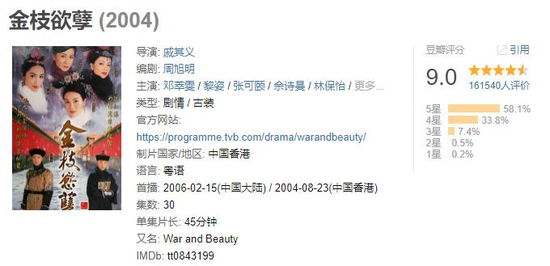 2004年,TVB制作的《金枝欲孽》登陆湖南卫视,吸引了2亿人观看,收视率达2.82%。
