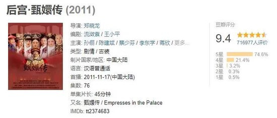 《金枝欲孽》与《甄嬛传》的豆瓣评分对比
