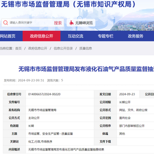 江苏省无锡市市场监管局发布液化石油气产品质量监督抽查结果
