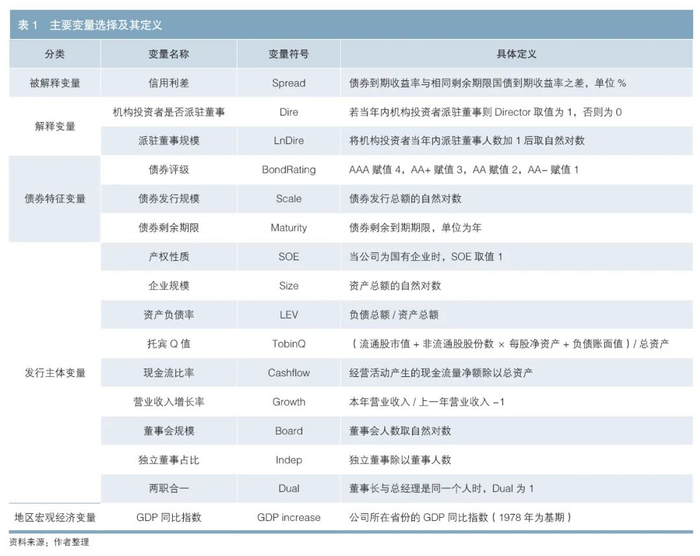 为考察机构投资者通过委派董事对债券信用利差的影响,本文构建了以下实证模型: