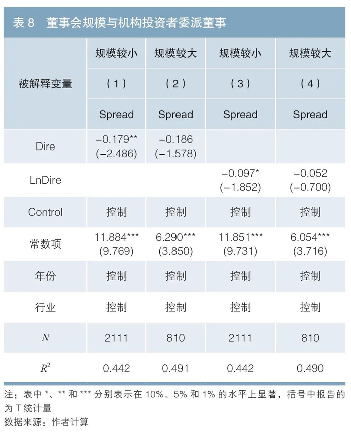 2.董事会规模与机构投资者委派董事的影响