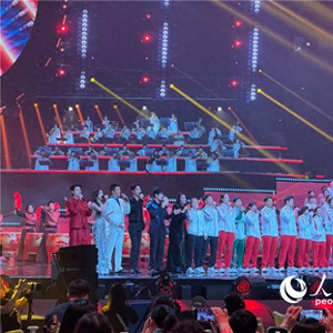 晚会开场奥运健儿与歌手们同唱《大中国》。人民网记者 富子梅摄