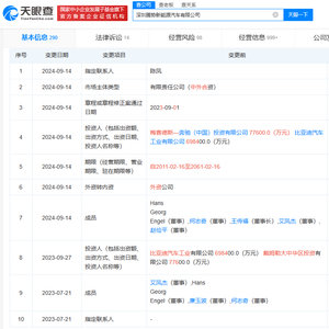 据天眼查App显示,9月14日,深圳腾势新能源汽车有限公司(以下简称:腾势汽车)发生了股权与工商变更,奔驰退出股东行列,将所持有的10%股权转让给比亚迪,比亚迪持股比例由此前的90%上升至100%。与此同时,梅赛德斯-奔驰中国的产业化与合作总监Hans Georg Engel 也退出了腾势汽车的股东名单。