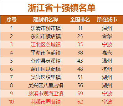 浙江十大强镇中,宁波占了3席,可见宁波镇域经济之发达。