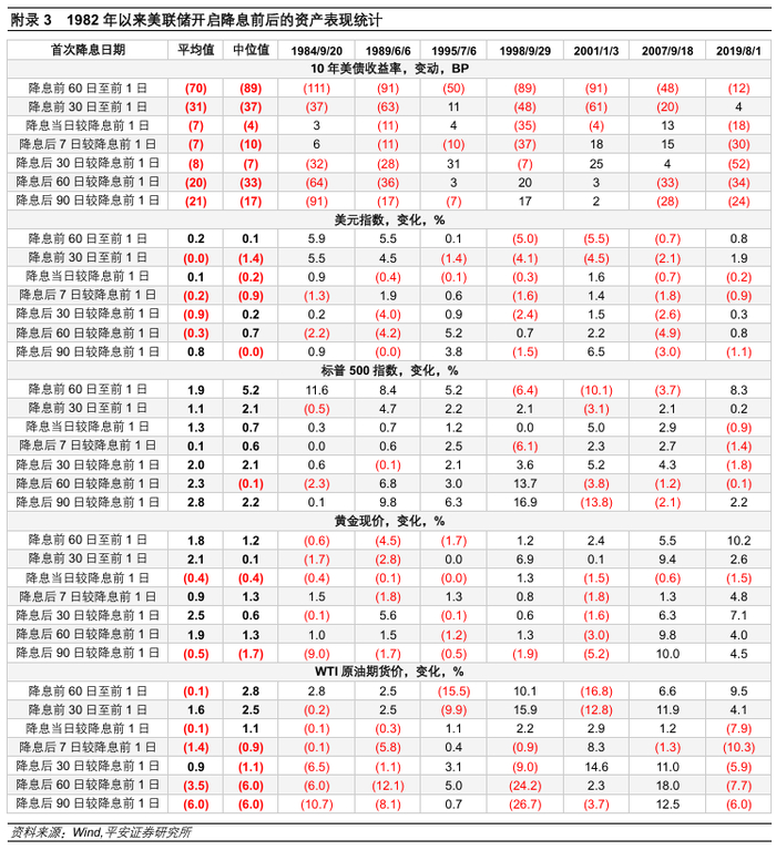 *附录:1982年以来美联储开启降息前后的经济、通胀和资产统计