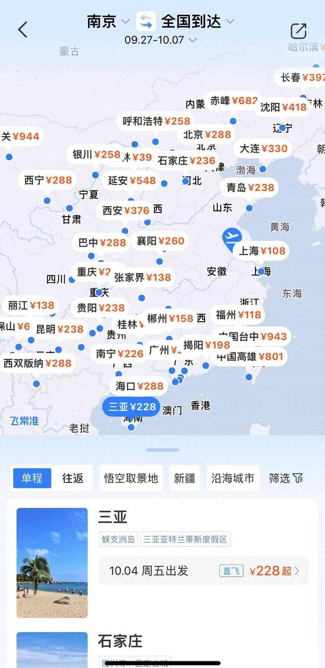 十一假期来临, 从南京出发,机票价格竟然降了不少