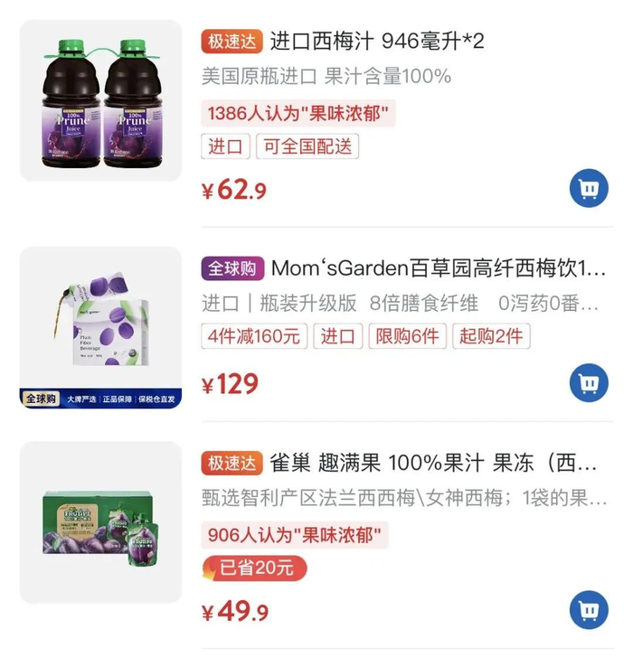 据悉,许多人因通便购买西梅,而西梅汁更是凭通便效果在网络爆火,被广大网友形象誉为“噗噗果汁”“大餐救星”。