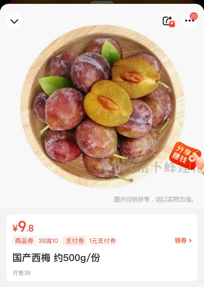 在某线上平台,国产西梅售价仅9.8元/500g。